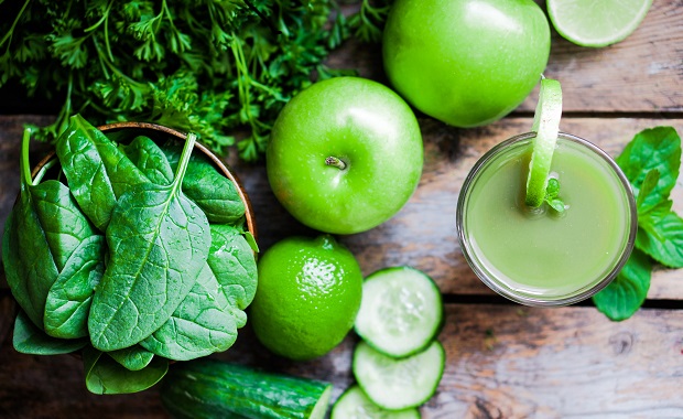 La mela verde, povera di calorie e prive di colesterolo, è ricca di sali minerali come potassio magnesio e calcio. Contiene anche aminoacidi essenziali, come la cistina e l’alanina. Il suo sapore fresco, la rende un’ottima base per questo centrifugato dall’azione depurativa grazie alla pectina che favorisce il transito intestinale. Anche il cetriolo ha un’azione depurativa e diuretica grazie al suo ricco contenuto di acqua (95%). Rispetto al “cugino” limone, il lime ha una quantità di vitamina C leggermente inferiore ma ha un’azione depurativa e antiossidante. È profumatissimo e molto gradevole come ingrediente.